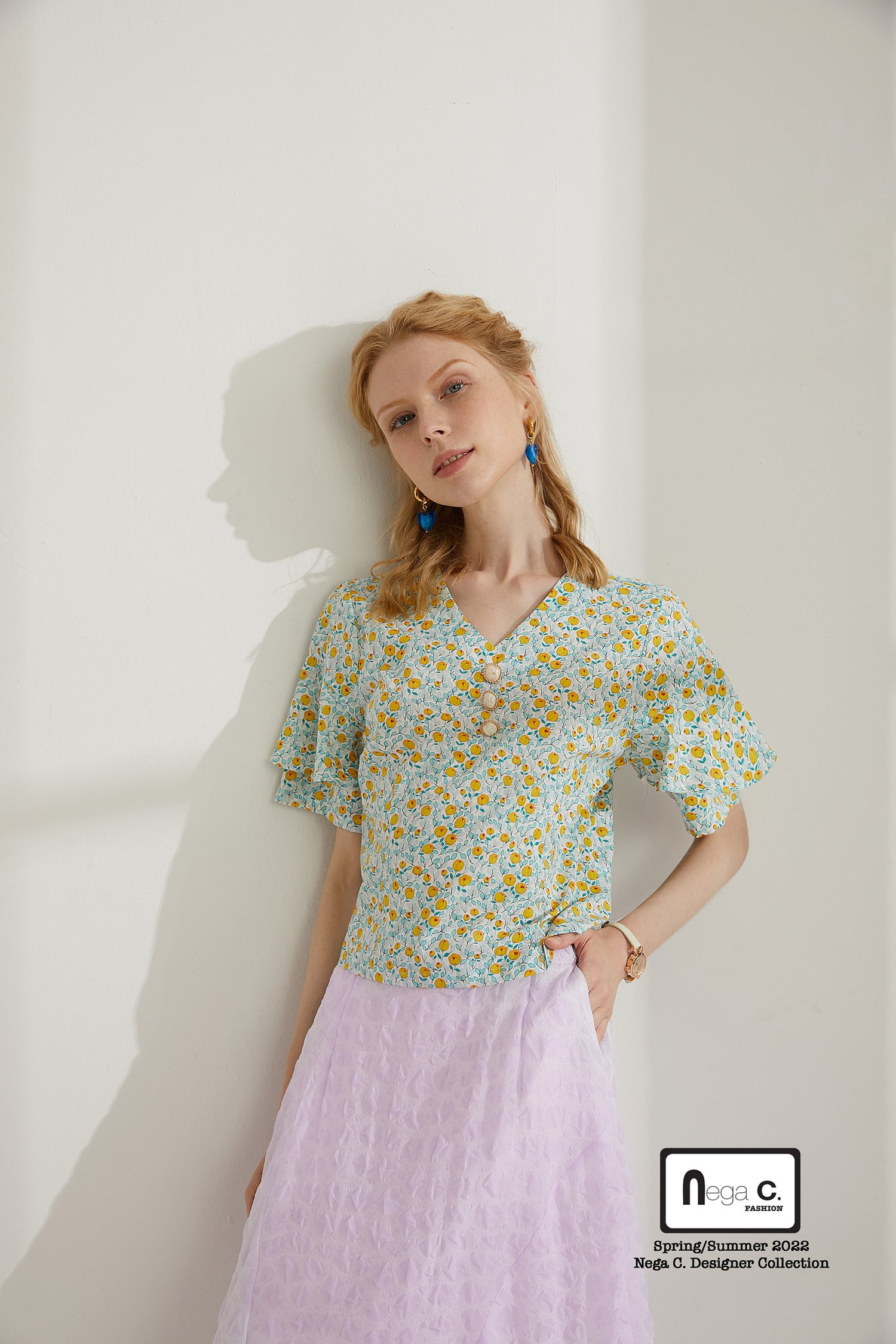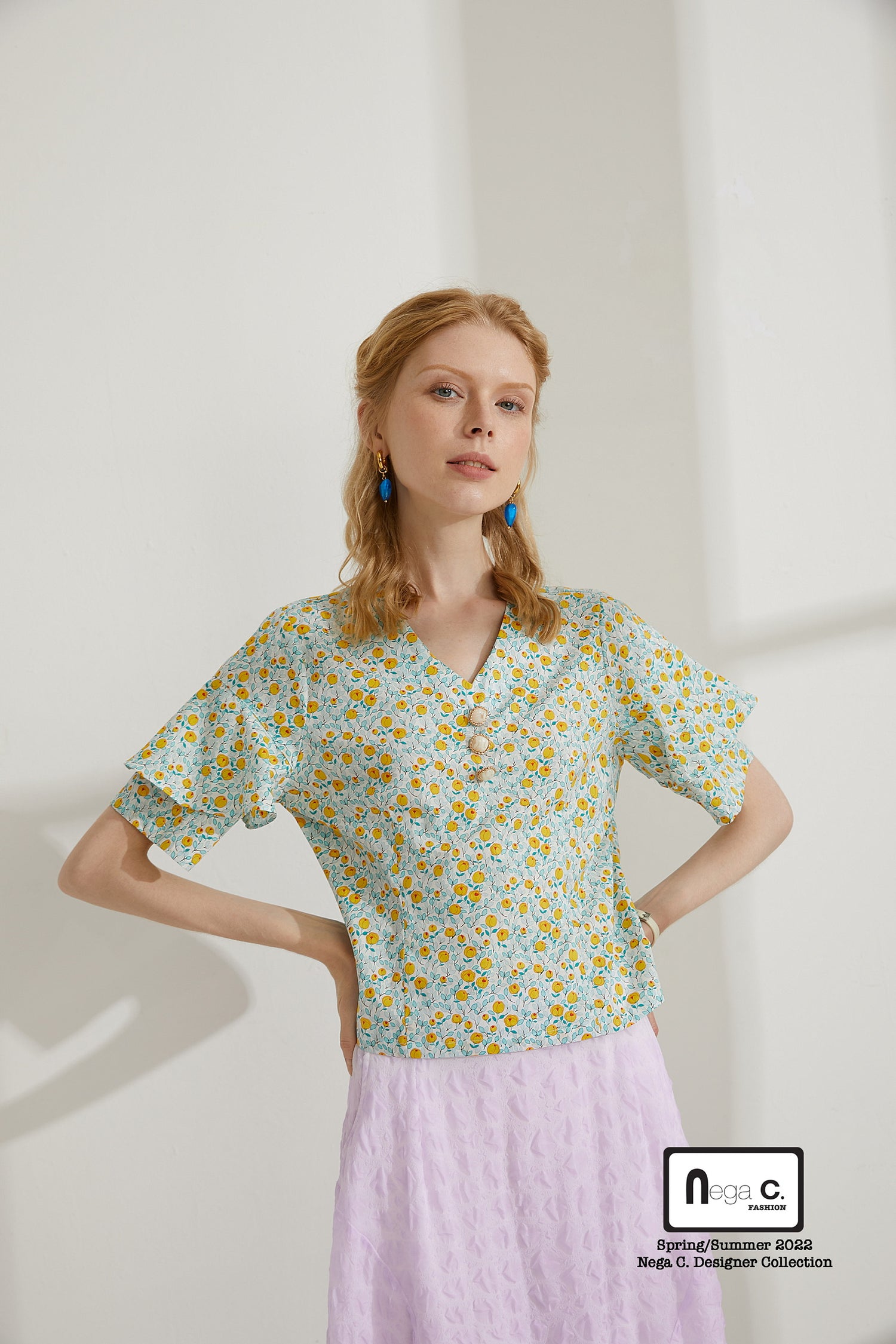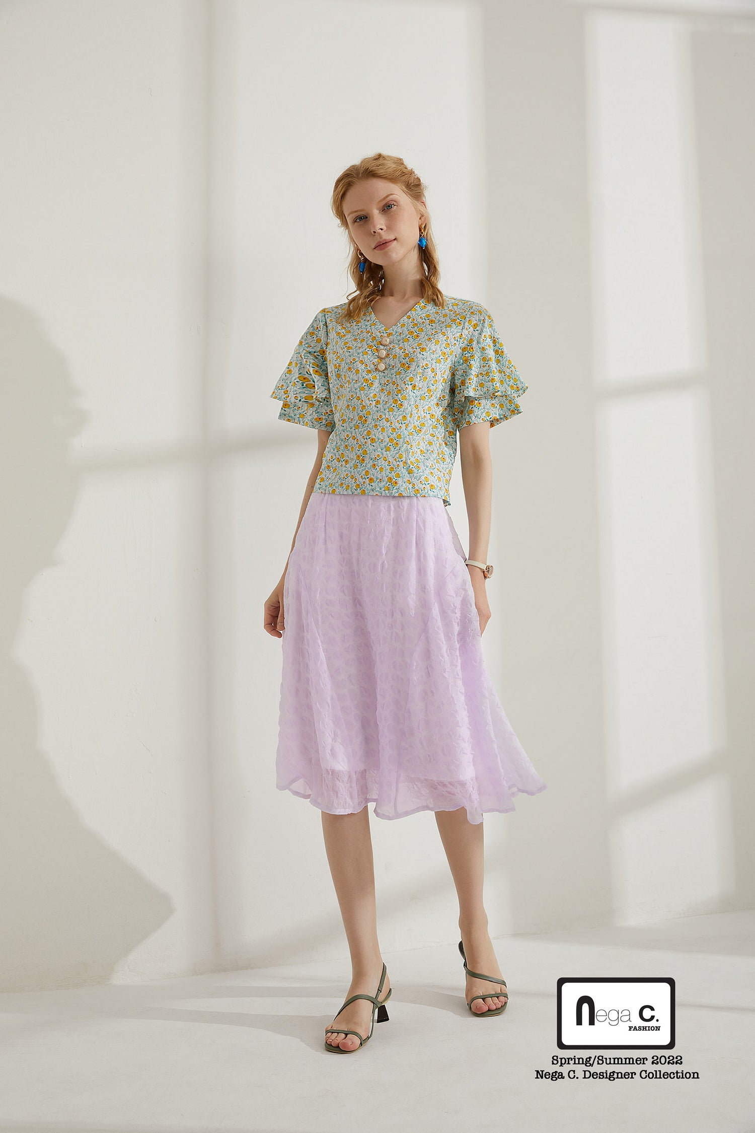 ดีไซน์เพรียวเอวสั้นนั้นเพรียวบางและแมตช์ง่าย ~ ผ้าพิมพ์ลายยังเพิ่มสีสันได้มากมาย ~ มีชีวิตชีวามาก ~