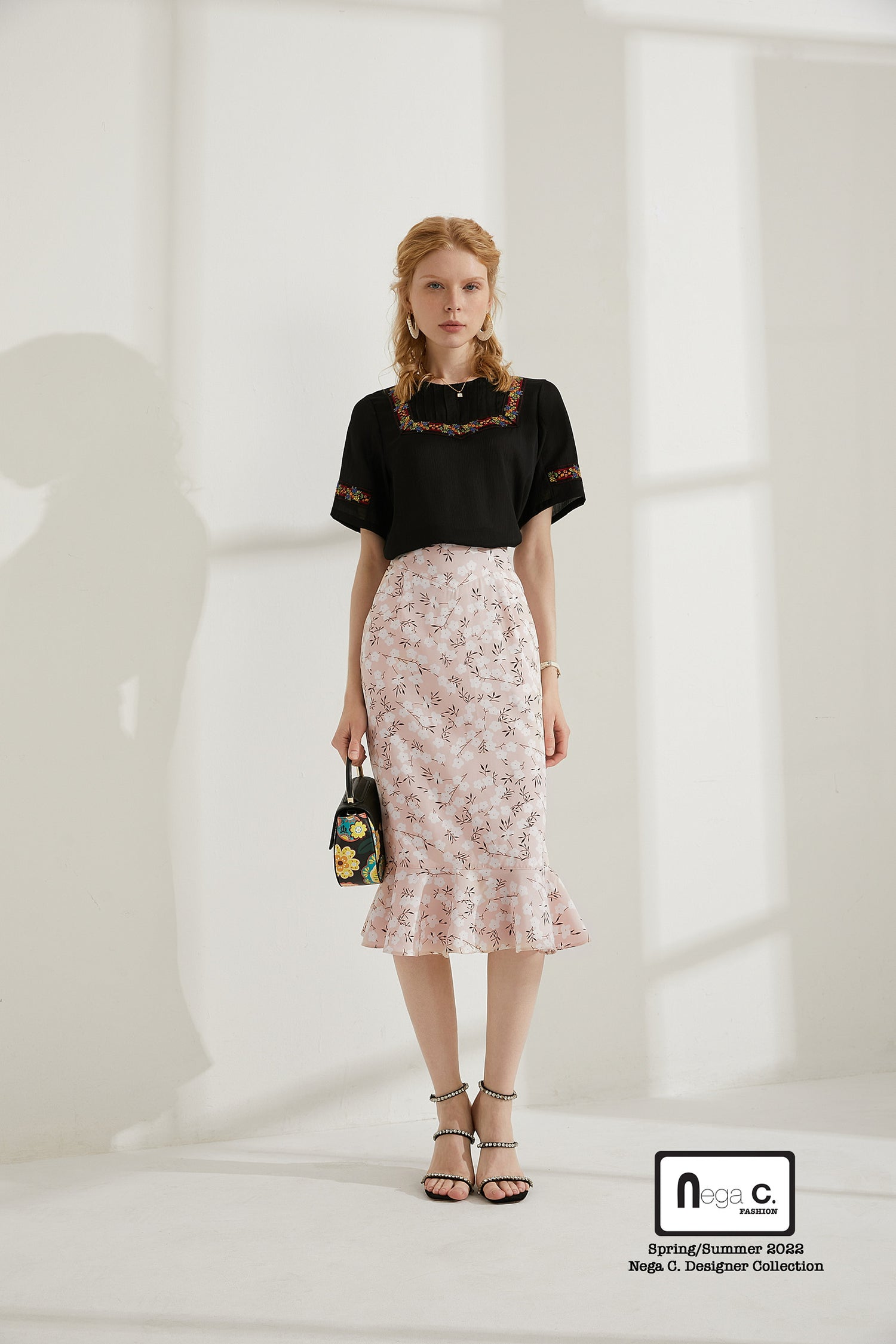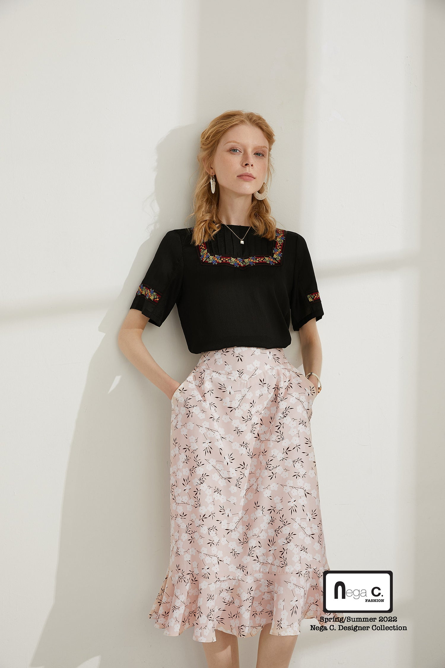 Nega C. เสื้อคอกลม Ethnic | สีดำ | ไม่มีซับใน