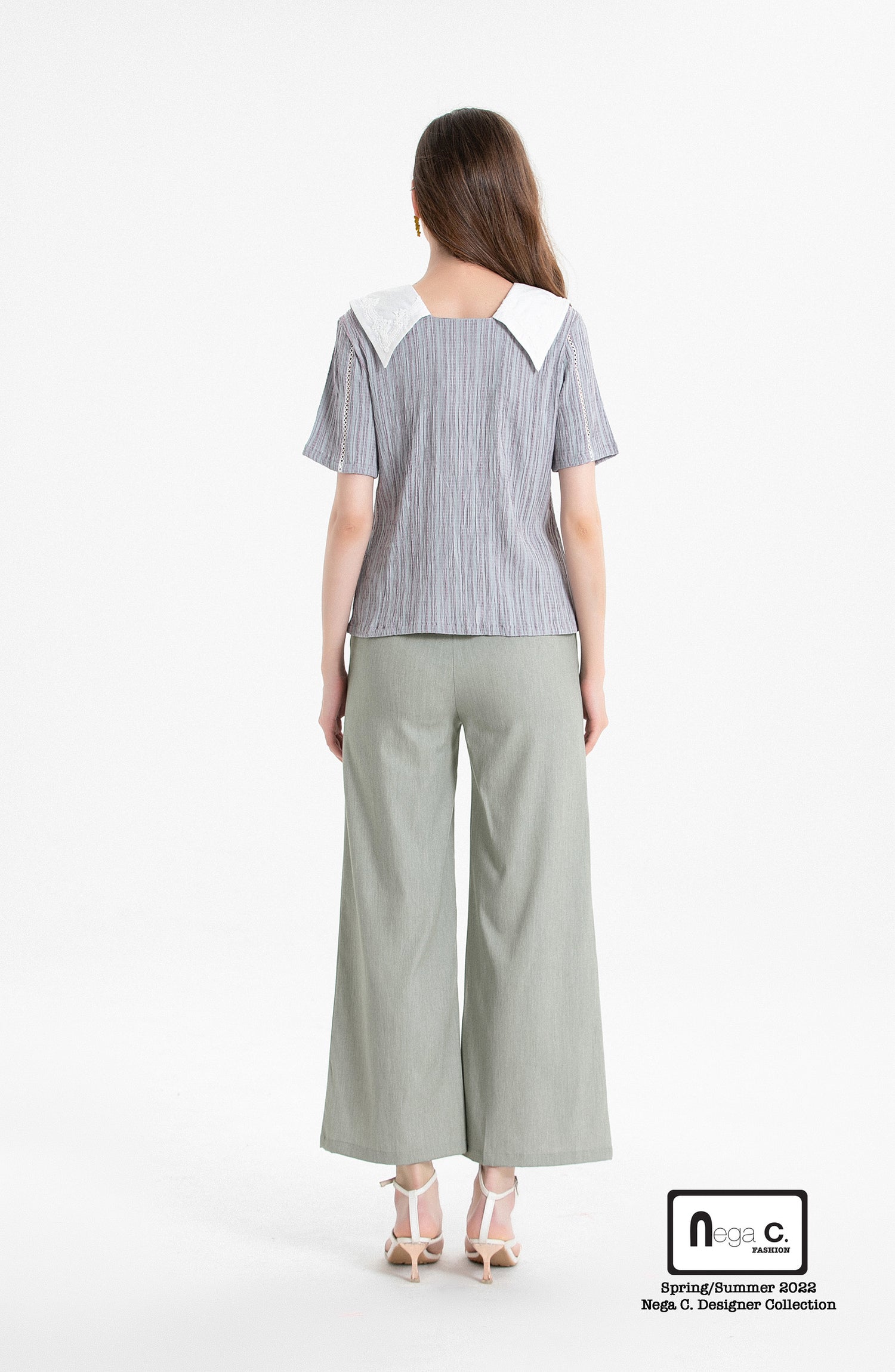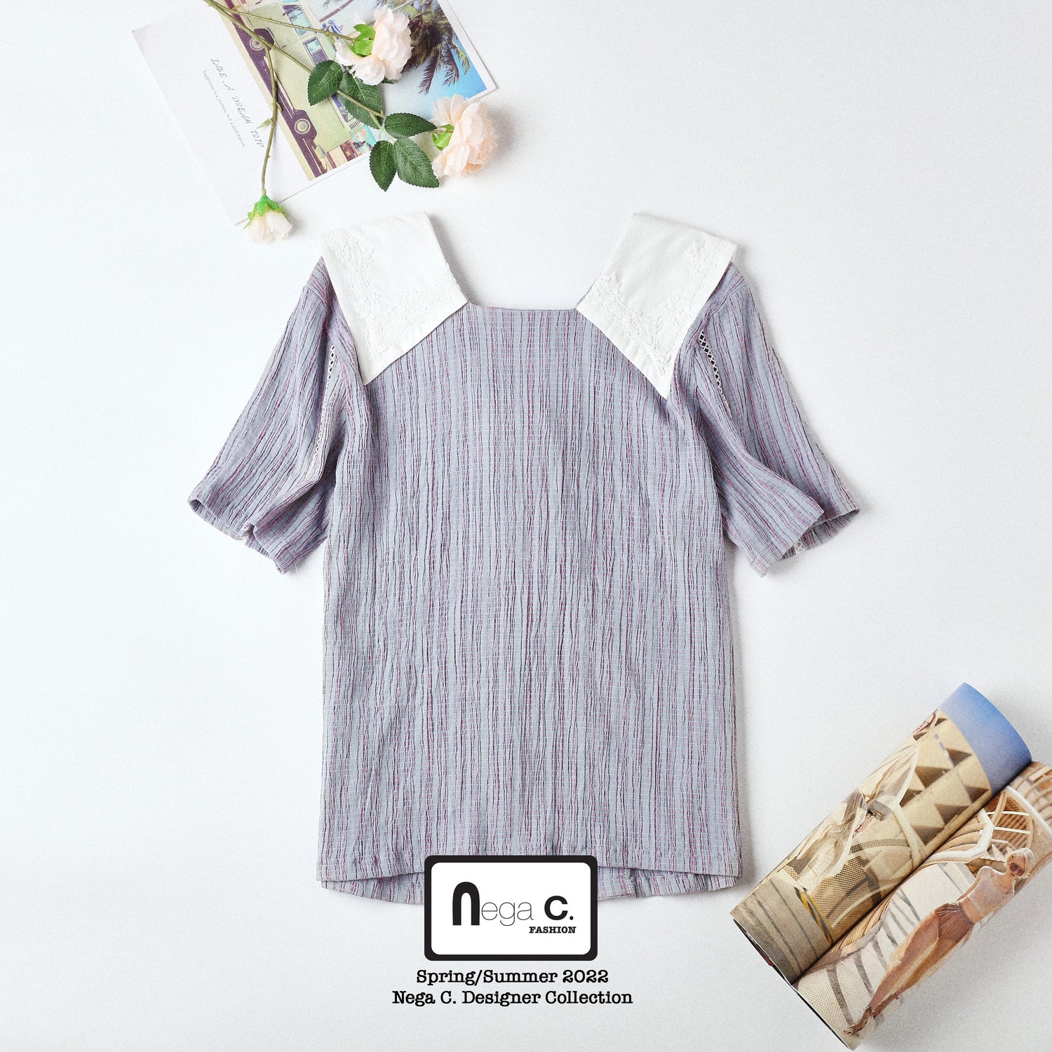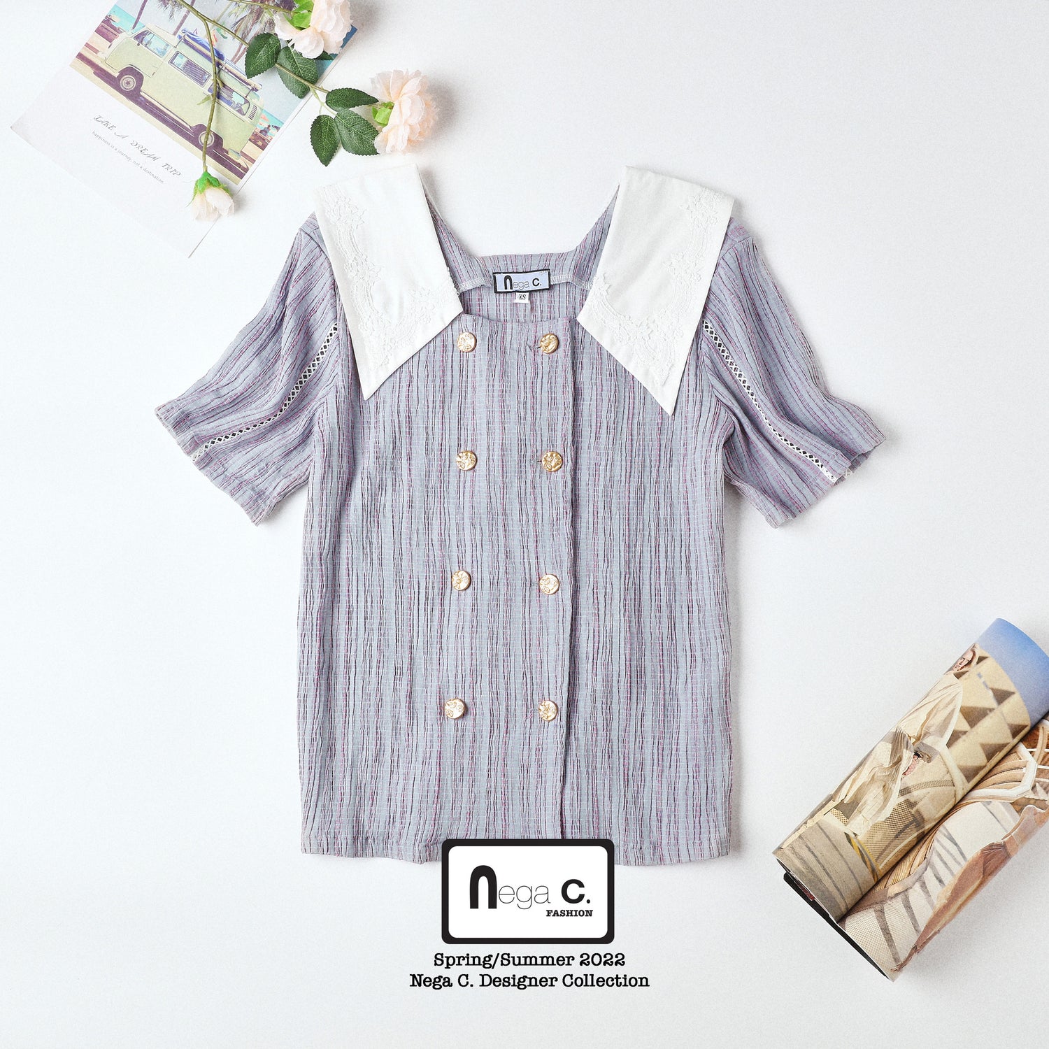 + Nega C. Colorblock เสื้อคอกลมกระดุมสองแถว|สีม่วง|ไม่มีซับใน+