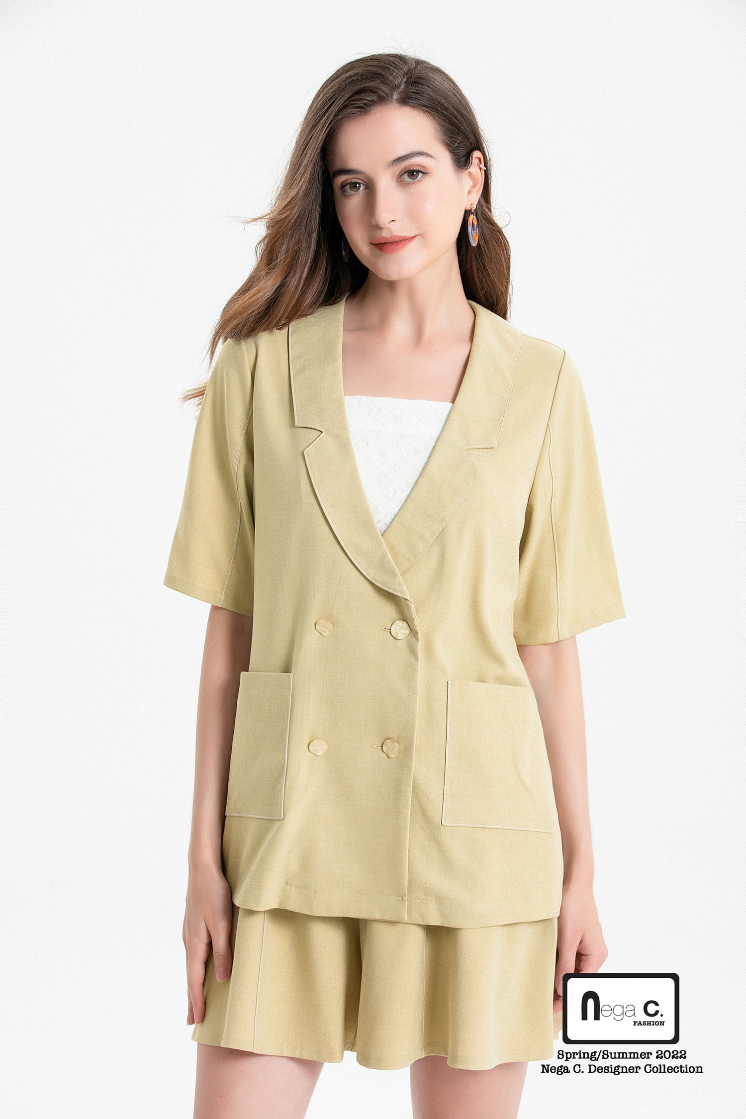 + Nega C. เบลเซอร์สั้นกระดุมสองแถว | สีเหลือง | ไม่มีซับใน +