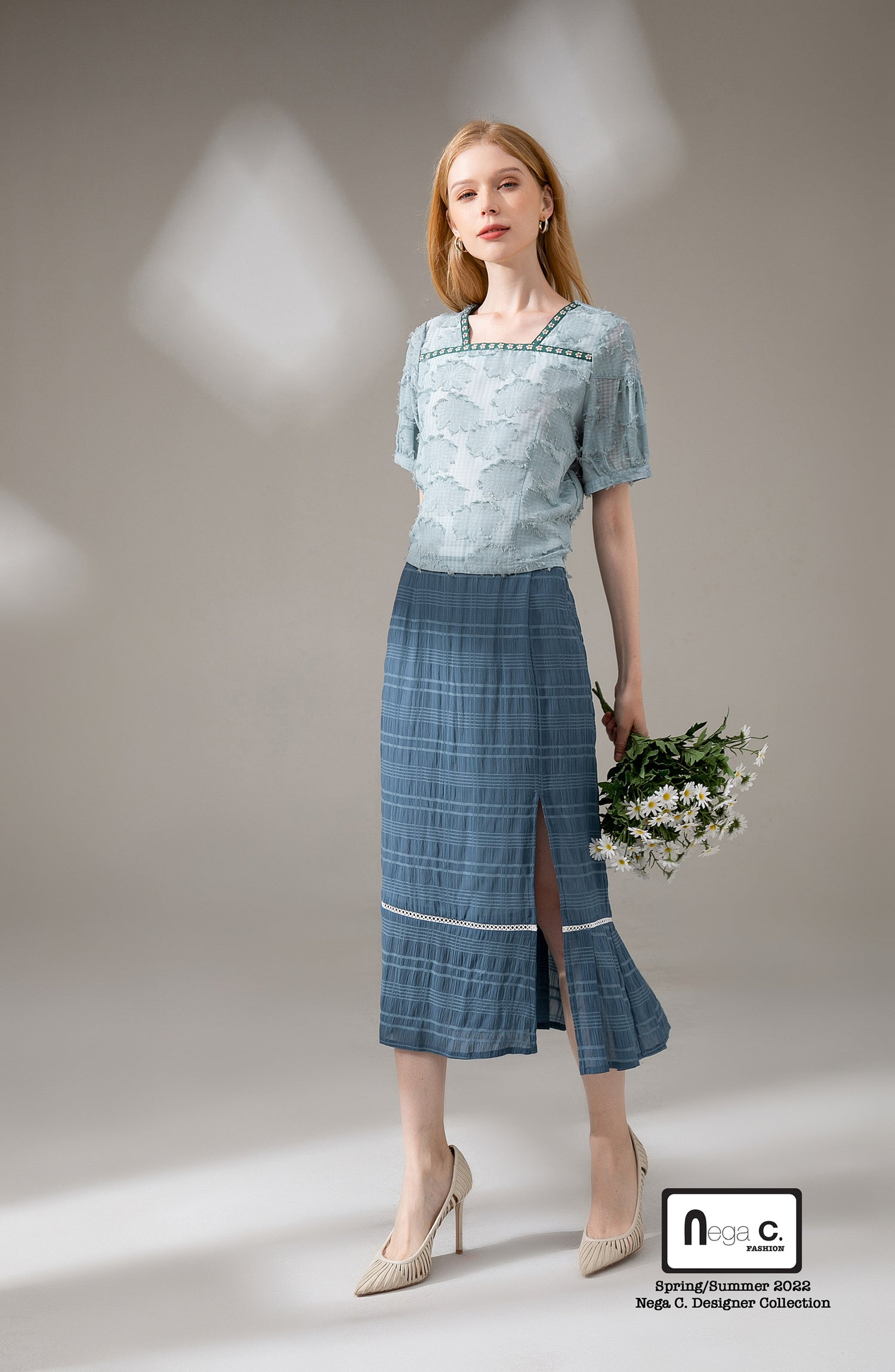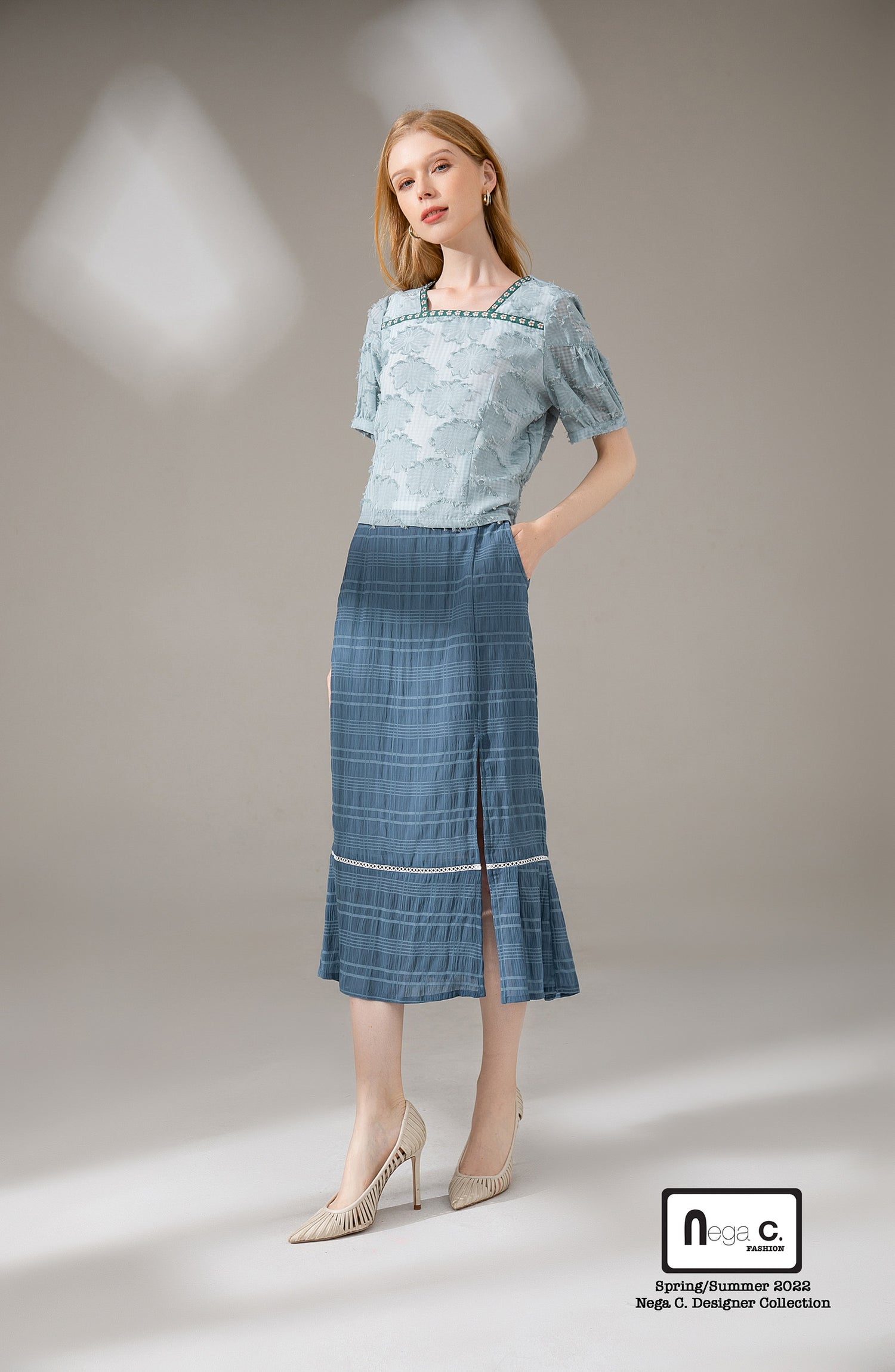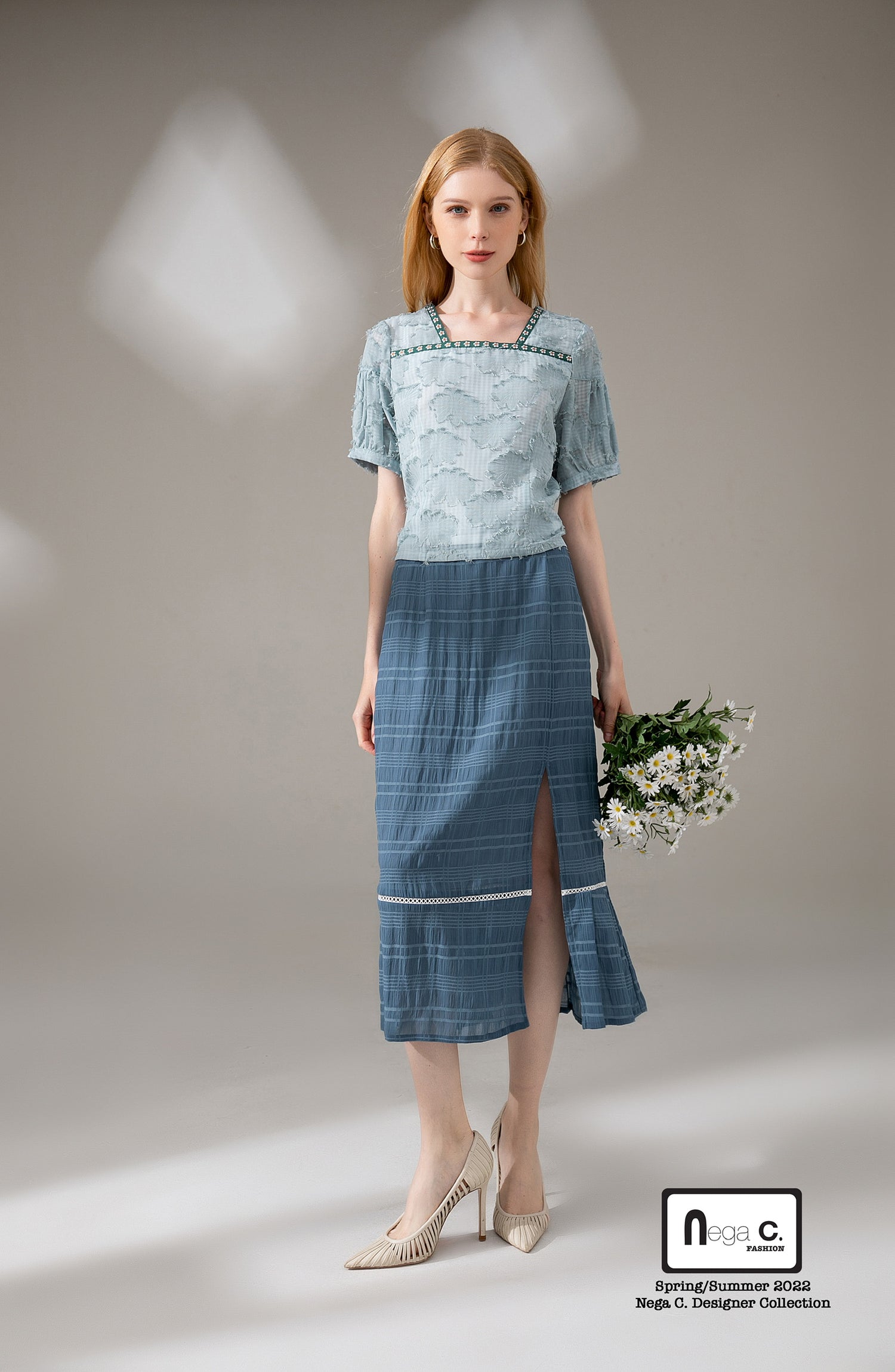 ผ้าลายสวยจริงๆ~ เสื้อสั้น เอวเพรียว เหมาะ จริงๆ ดีไซน์แขนพองเล็กดูหรูหรา มาก ~