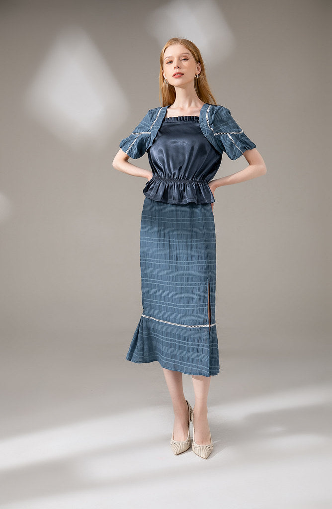 ฉบับนี้เป็นรุ่นพิเศษของเราในฉบับนี้~ คอร์เซ็ทเล็ก ๆ ปรับรอบเอวได้~ ใส่คู่กับกระโปรงผ้าเดียวกันก็ดูดีมากทั้งชุด~ อารมณ์อิ่ม~