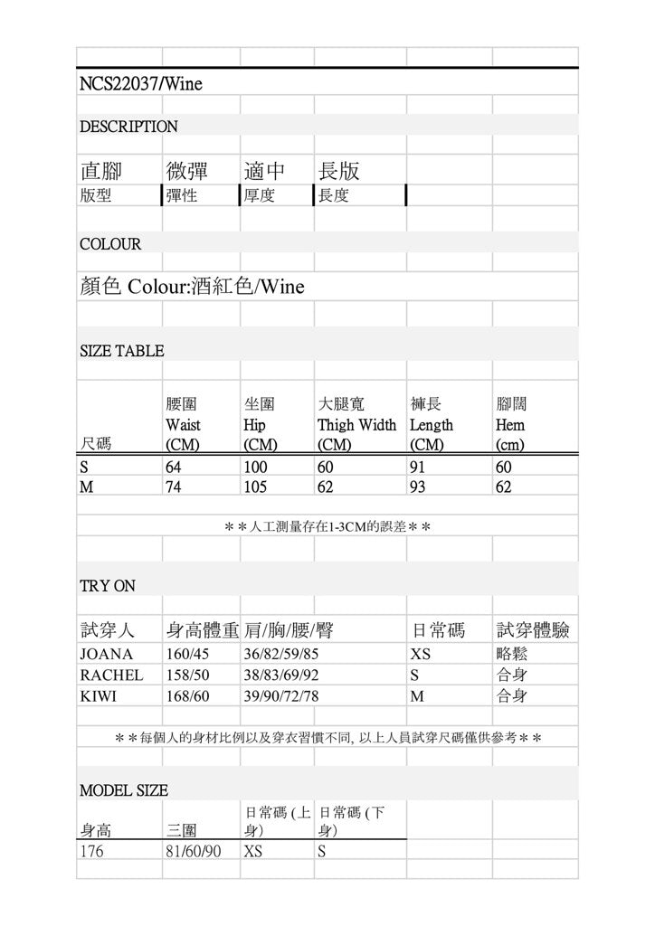 Nega C. กางเกงขากว้างเอวยางยืด | สีเบอร์กันดี | เอวยางยืด | ยืดหยุ่นเล็กน้อย |