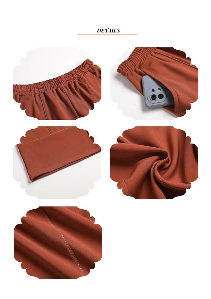 กางเกงขายาวทรงวงกลมทั้งหมดทำจากยางยืด ทำให้ สวมใส่สบายและลำลองมากขึ้น ~~ การออกแบบสไตล์เรียบง่ายยังใช้งานได้หลากหลายและสวมใส่สบาย~เหมาะอย่างยิ่งสำหรับช่วงปลายฤดูร้อนถึงต้นฤดูใบไม้ร่วง~