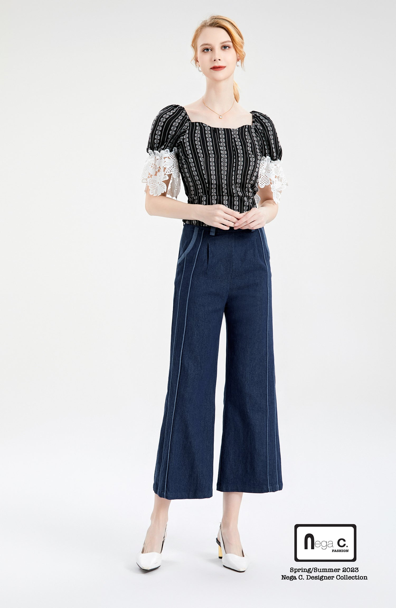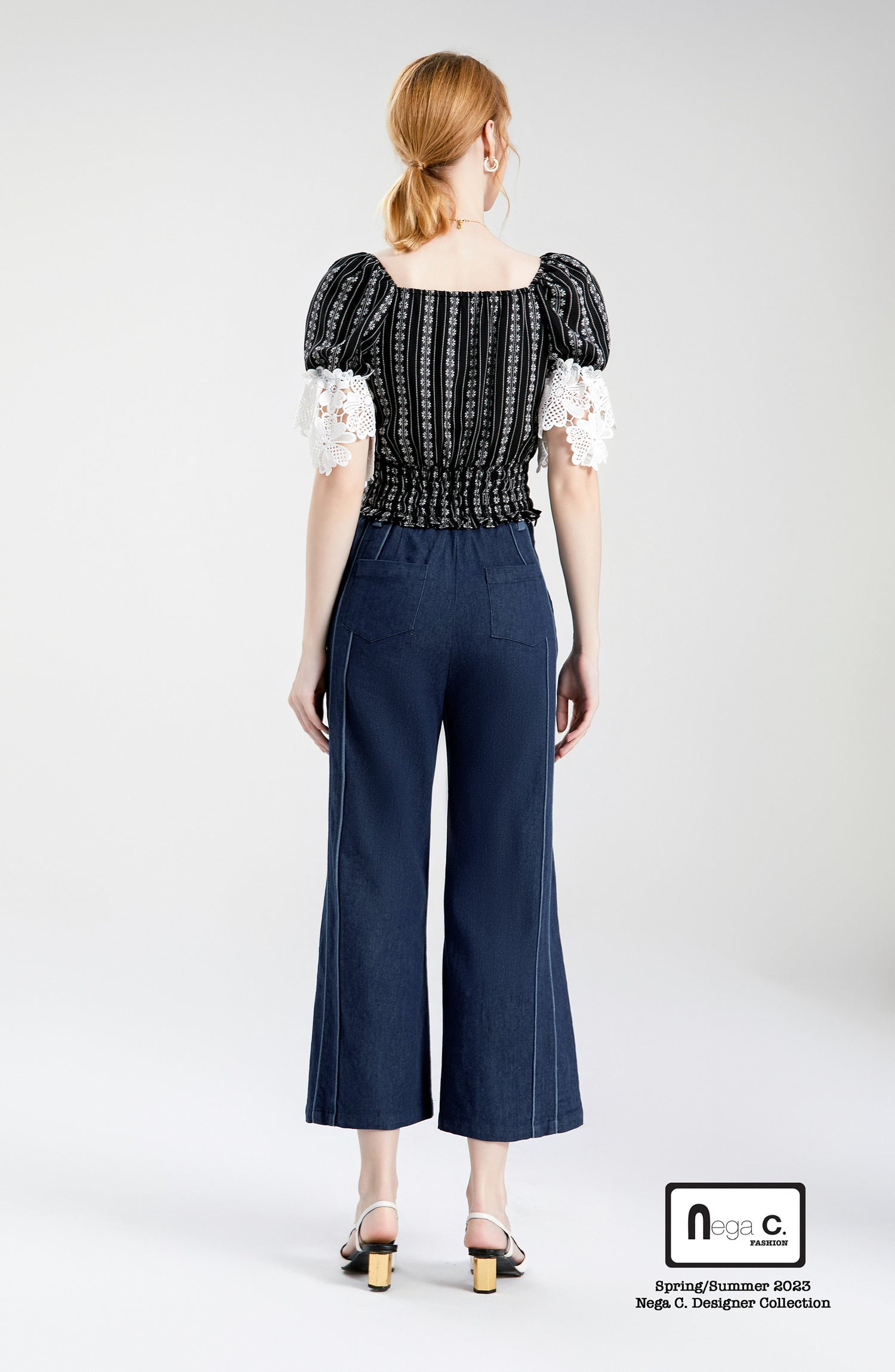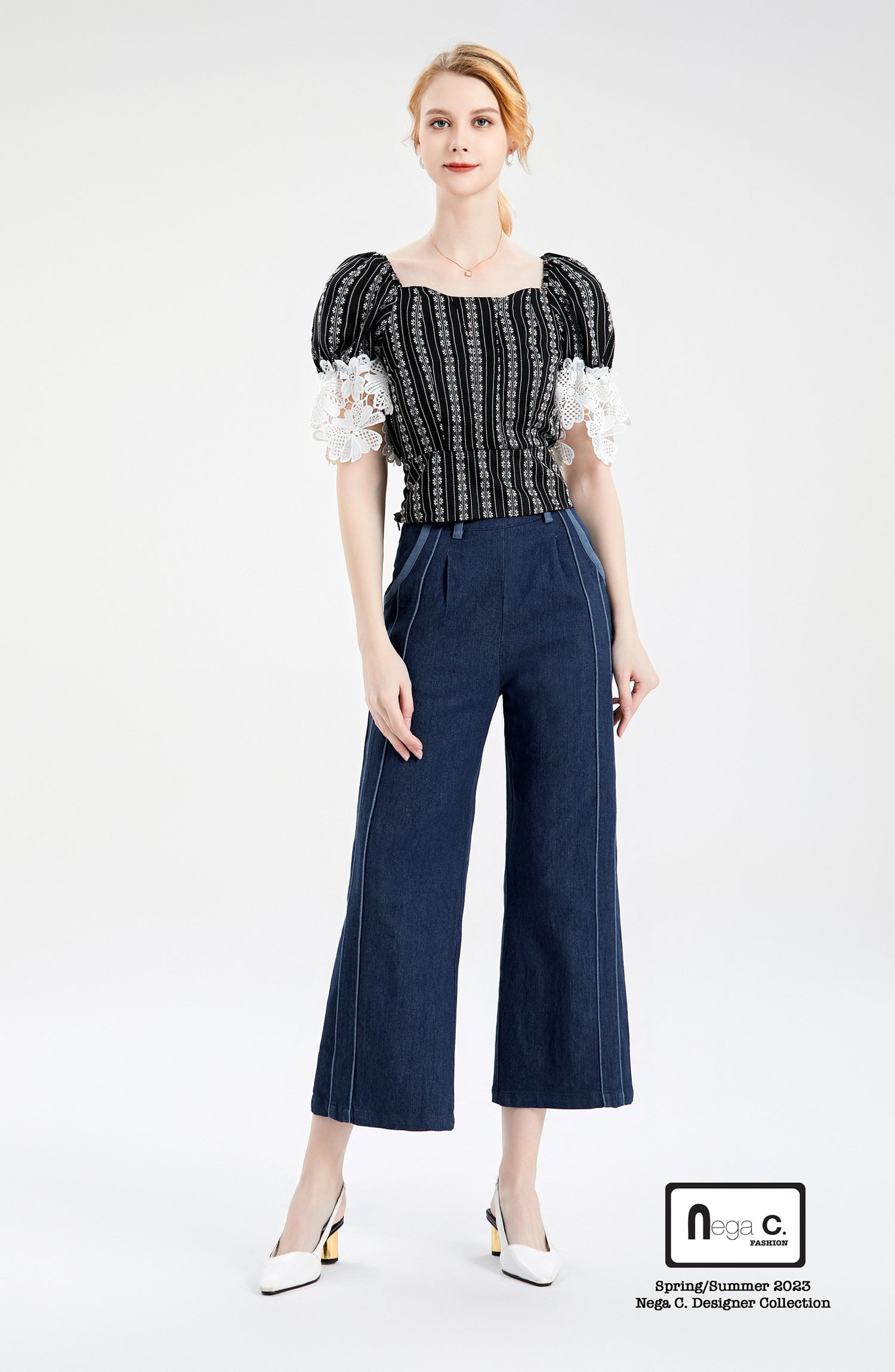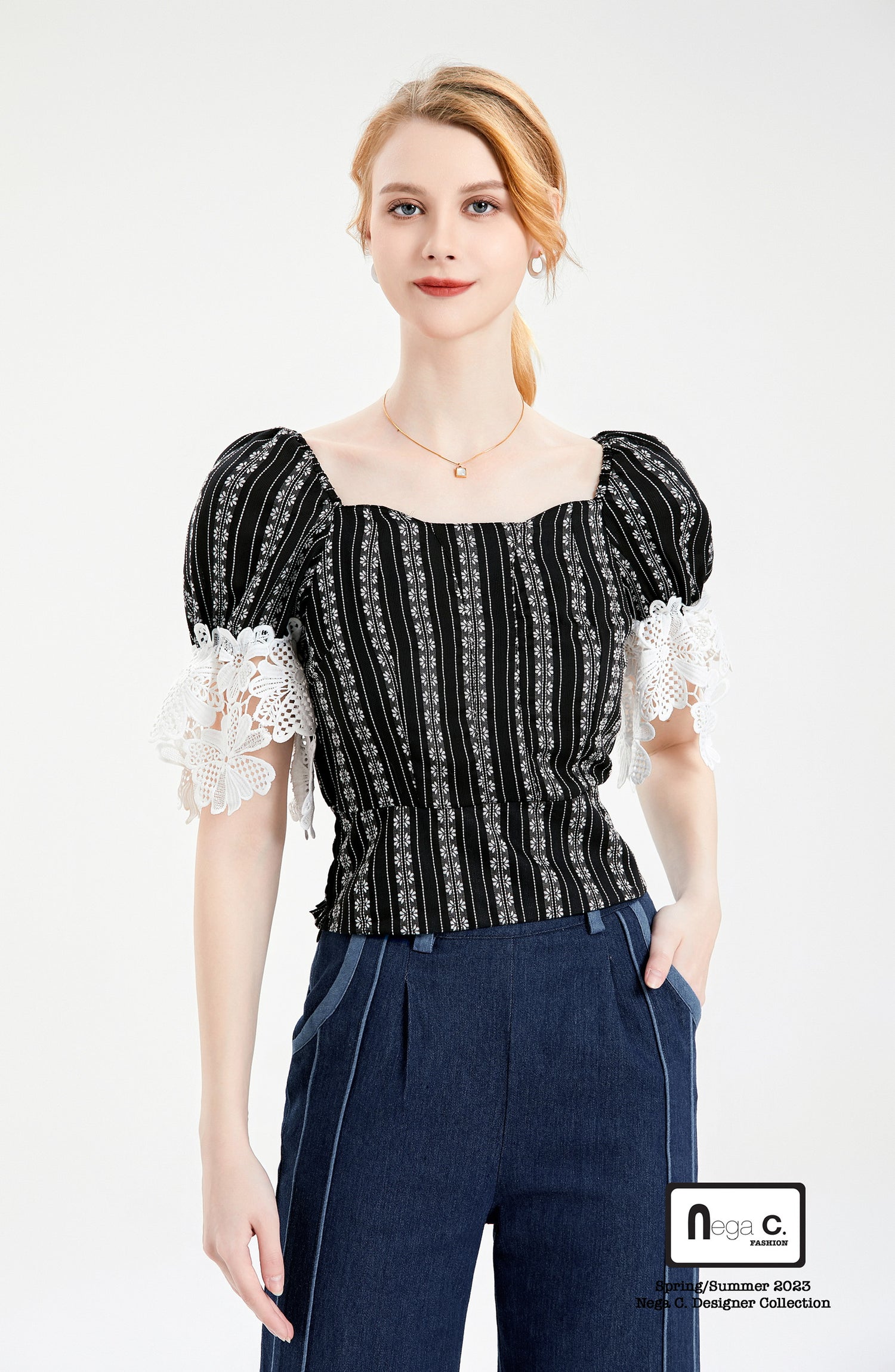 + Nega C. เสื้อเอวลอยคอสวีทฮาร์ท | สีดำ | ไม่ยืดหยุ่น +