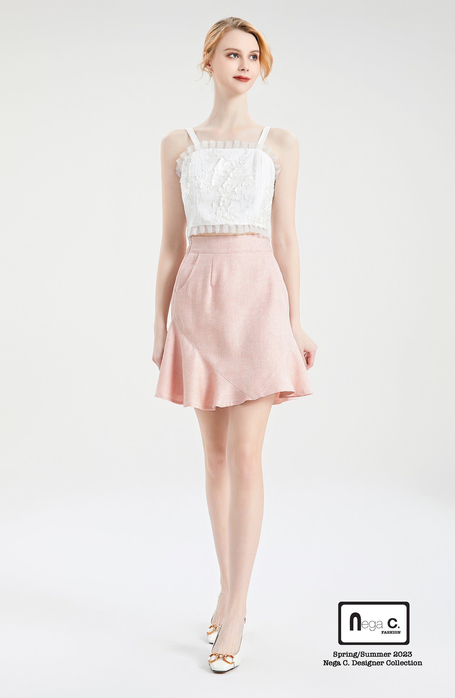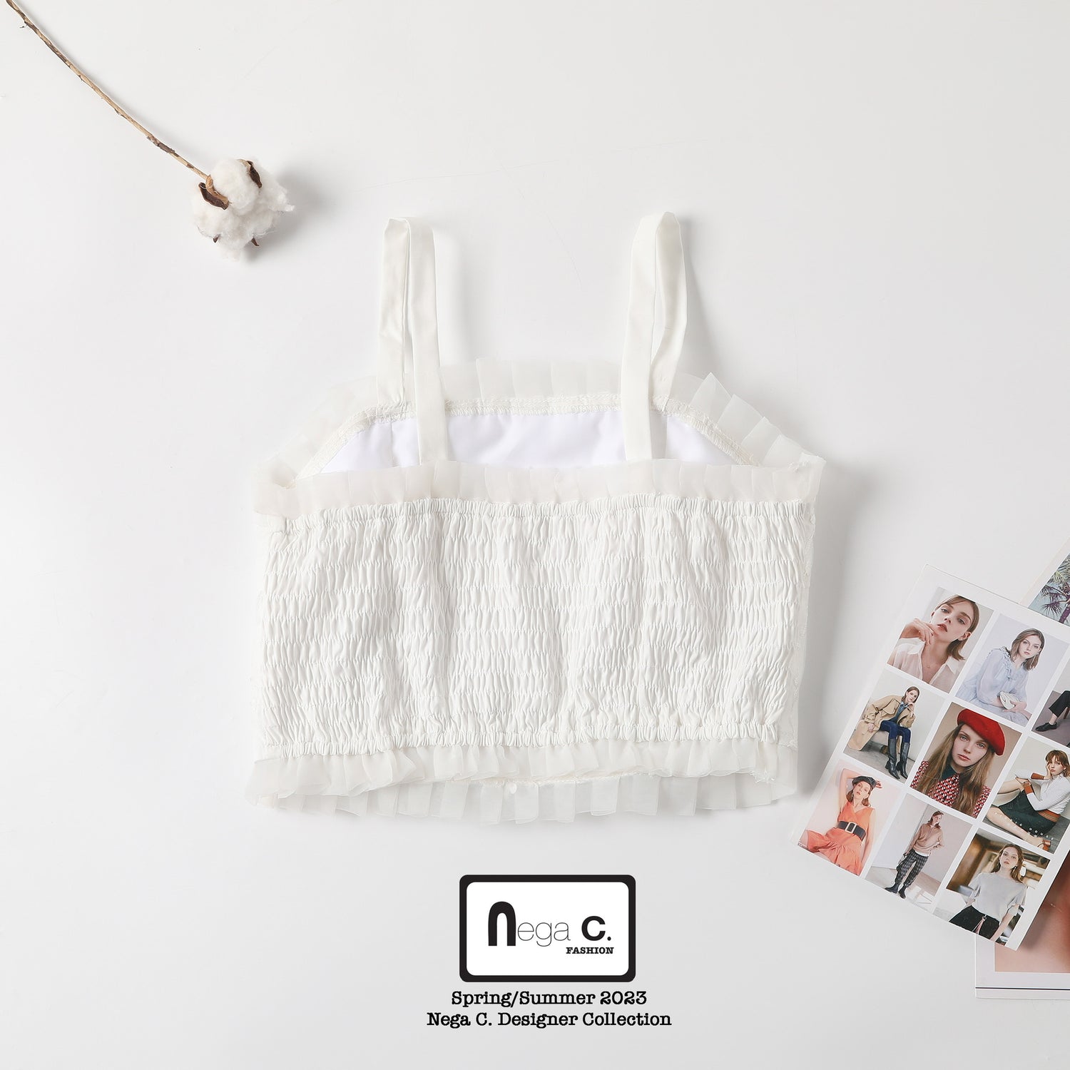 +Nega C. เสื้อสายเดี่ยวลูกไม้ลายดอกไม้สุดโรแมนติกพร้อมสายสปาเก็ตตี้ |สีขาว |มีซับใน|+