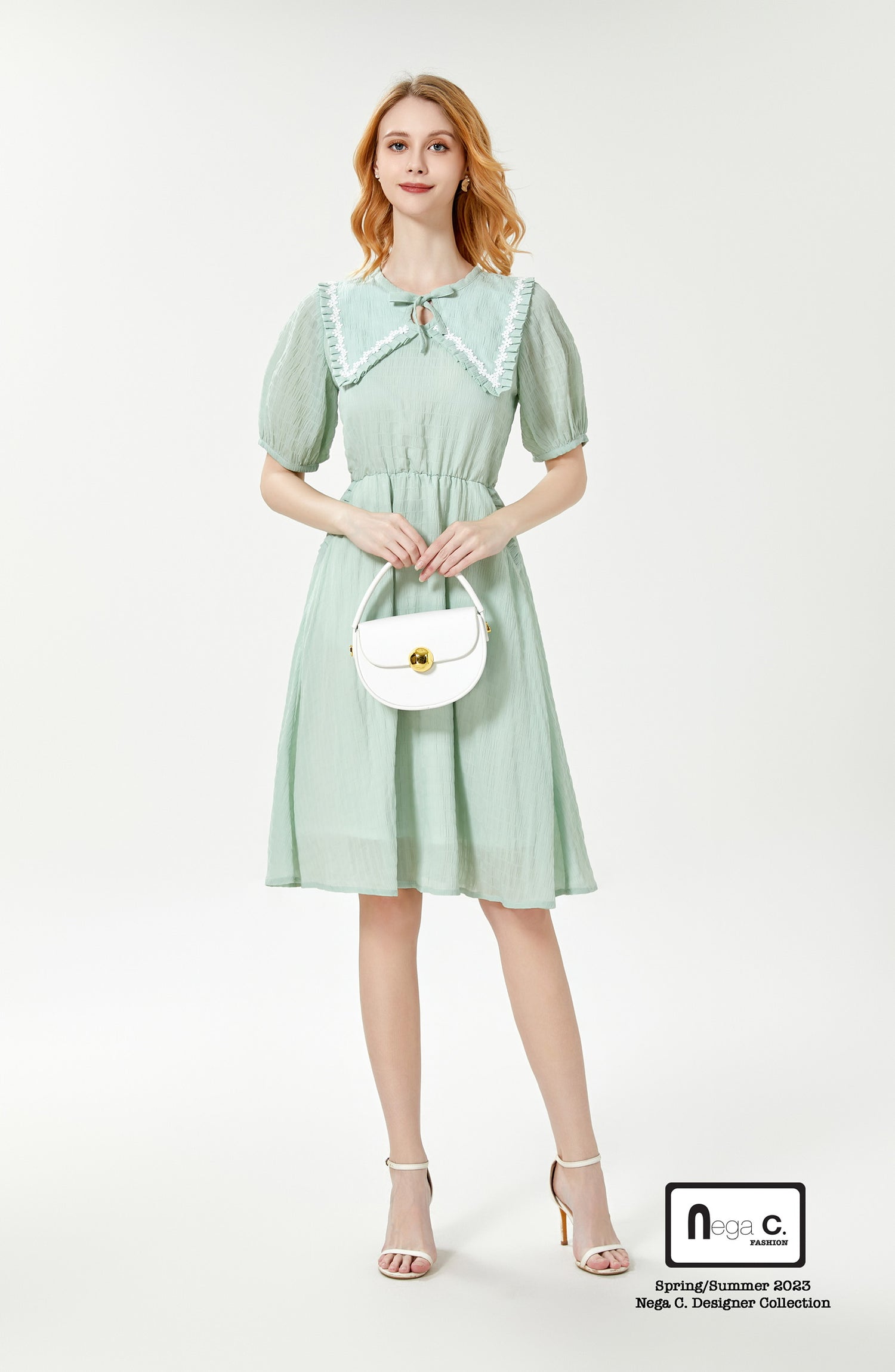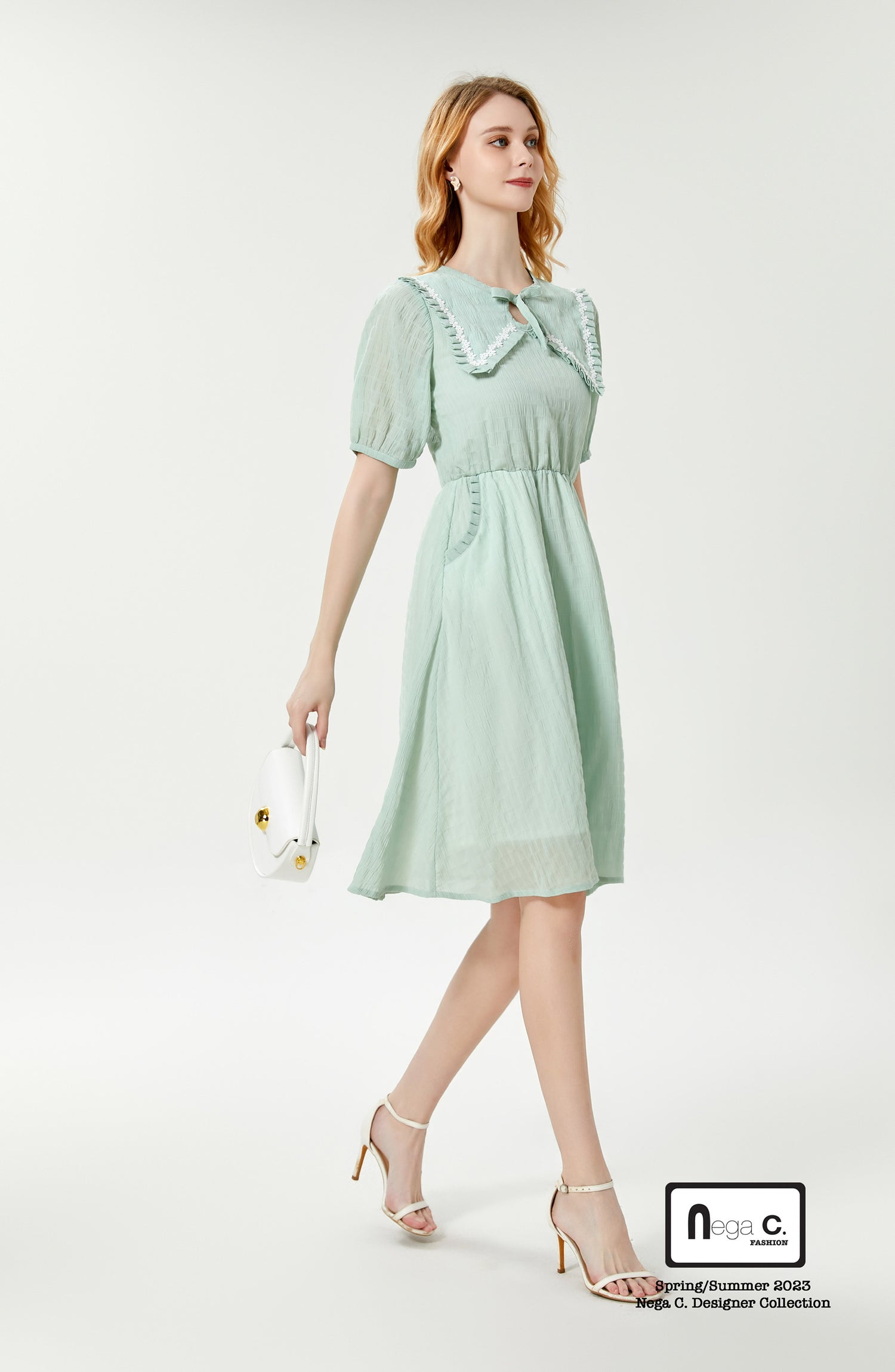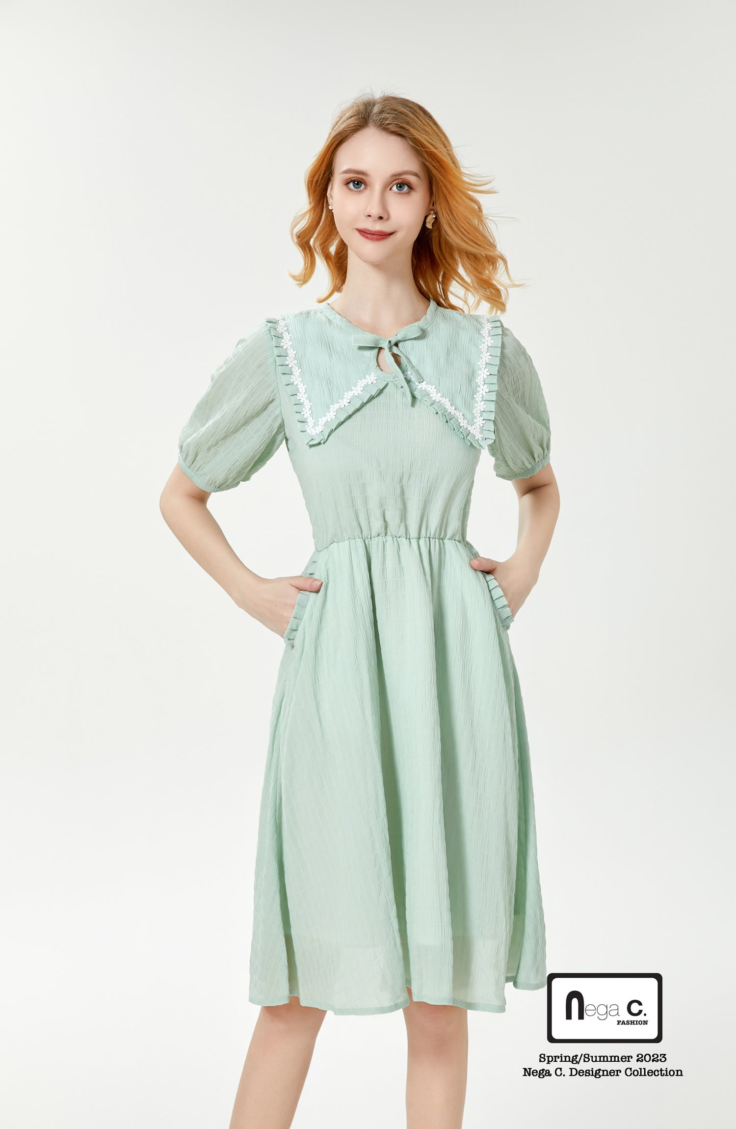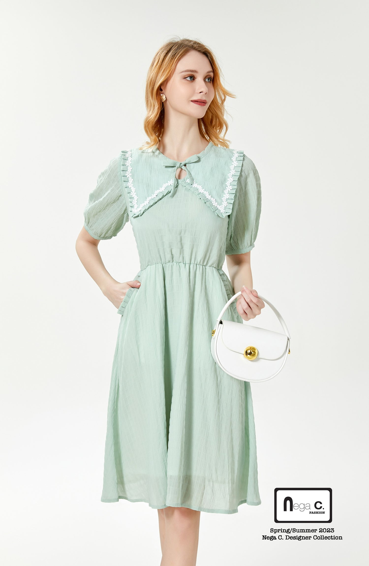ชุดนี้เป็นชิ้นที่มีสไตล์เต็มไปด้วยสไตล์น่ารัก การออกแบบคอกลมและพับแสดงให้เห็นถึงความสง่างามของผู้หญิง ในขณะที่การเพิ่มโบว์ทำให้กระโปรงทั้งตัวมีความขี้เล่นและความน่ารักมากขึ้น ใส่แล้วกลายเป็นคนมีเสน่ห์ที่สุดทันที
