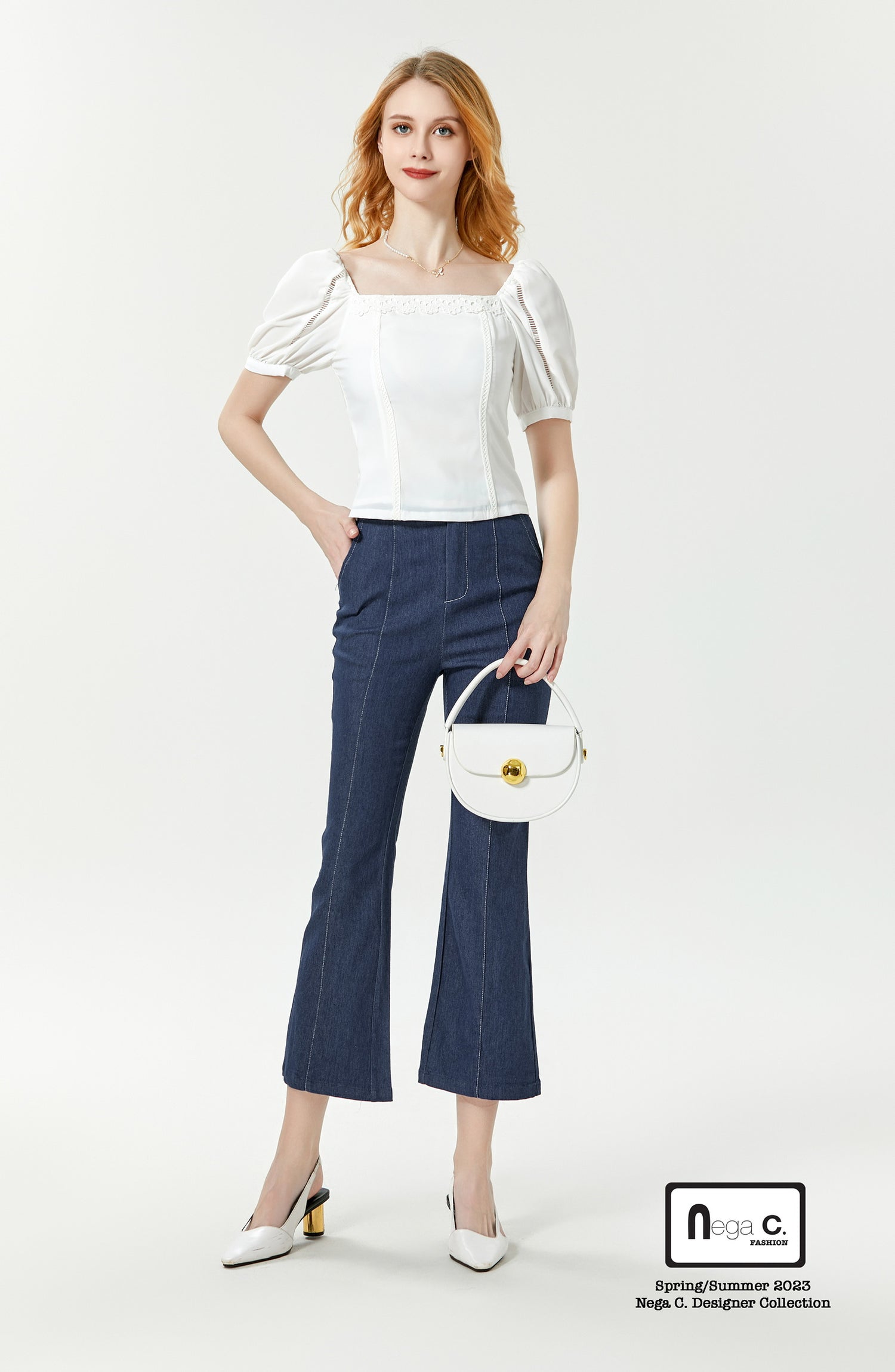 Nega C. เสื้อแขนพองลูกไม้คอเหลี่ยมหวาน | สีขาว | มีซับใน