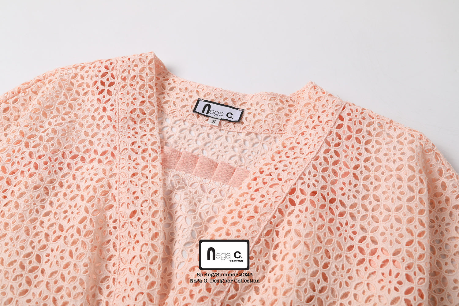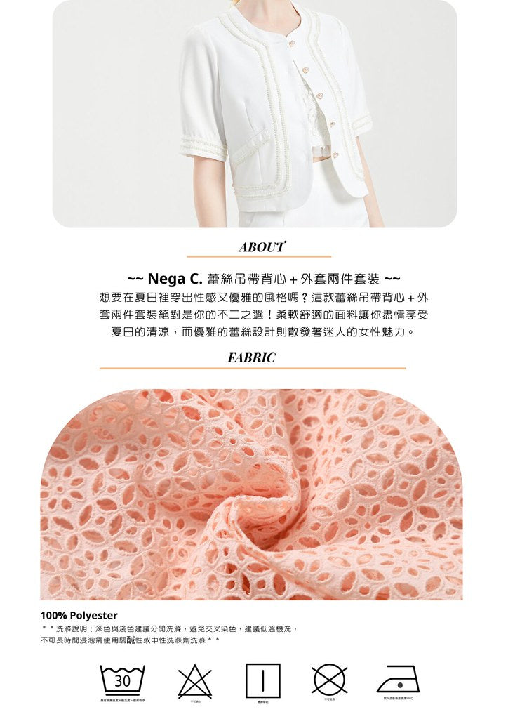 +Nega C. เสื้อสายเดี่ยวลูกไม้ + เสื้อแจ็คเก็ตทูพีช | สีชมพู | มีซับใน +