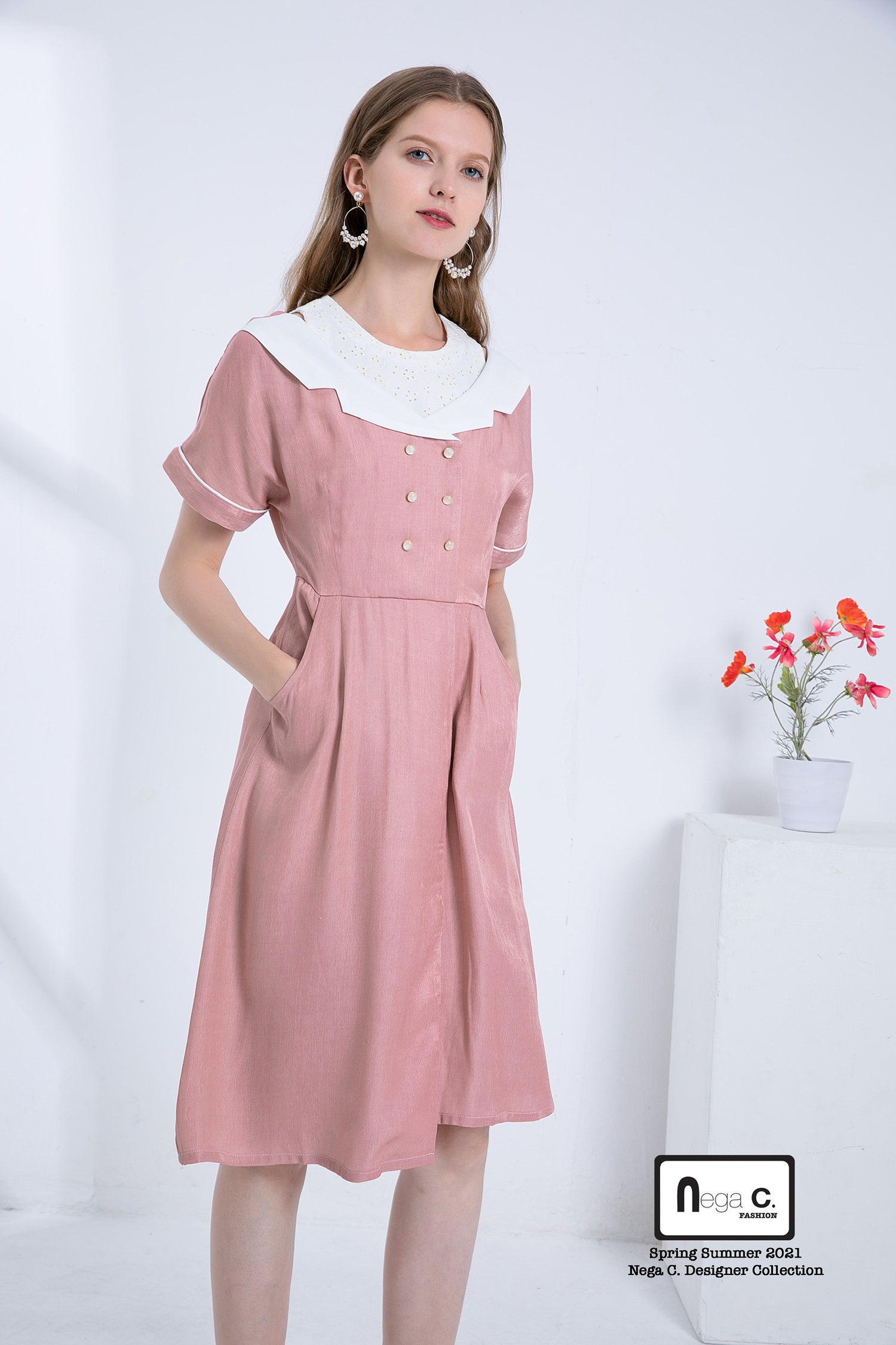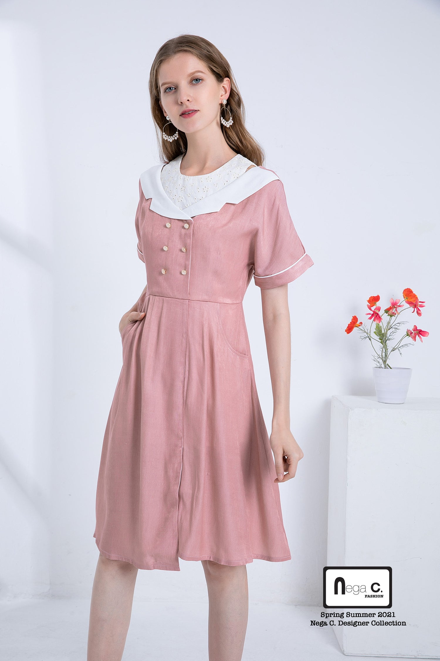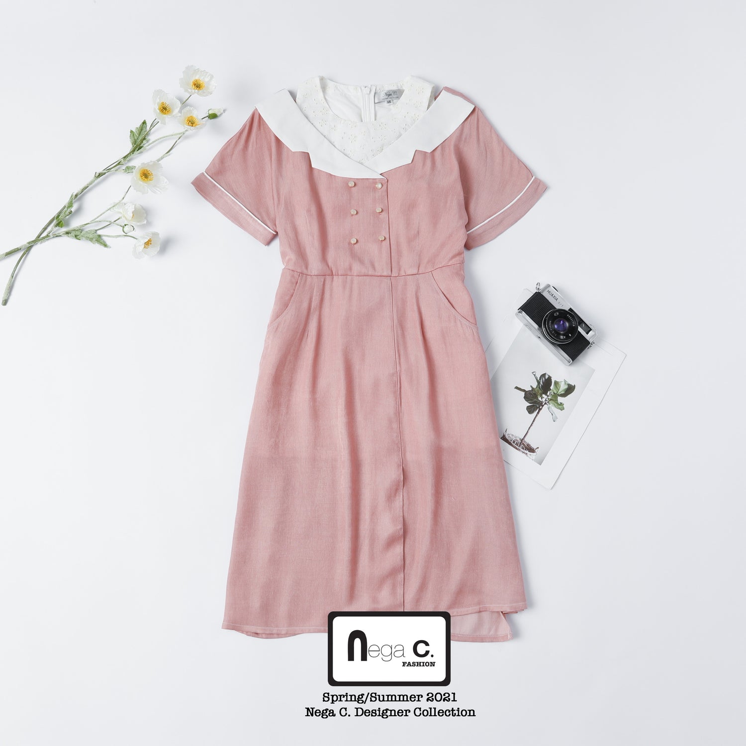 Nega C. เดรสเชิ้ตปลอมสไตล์เรโทร | สีชมพู |