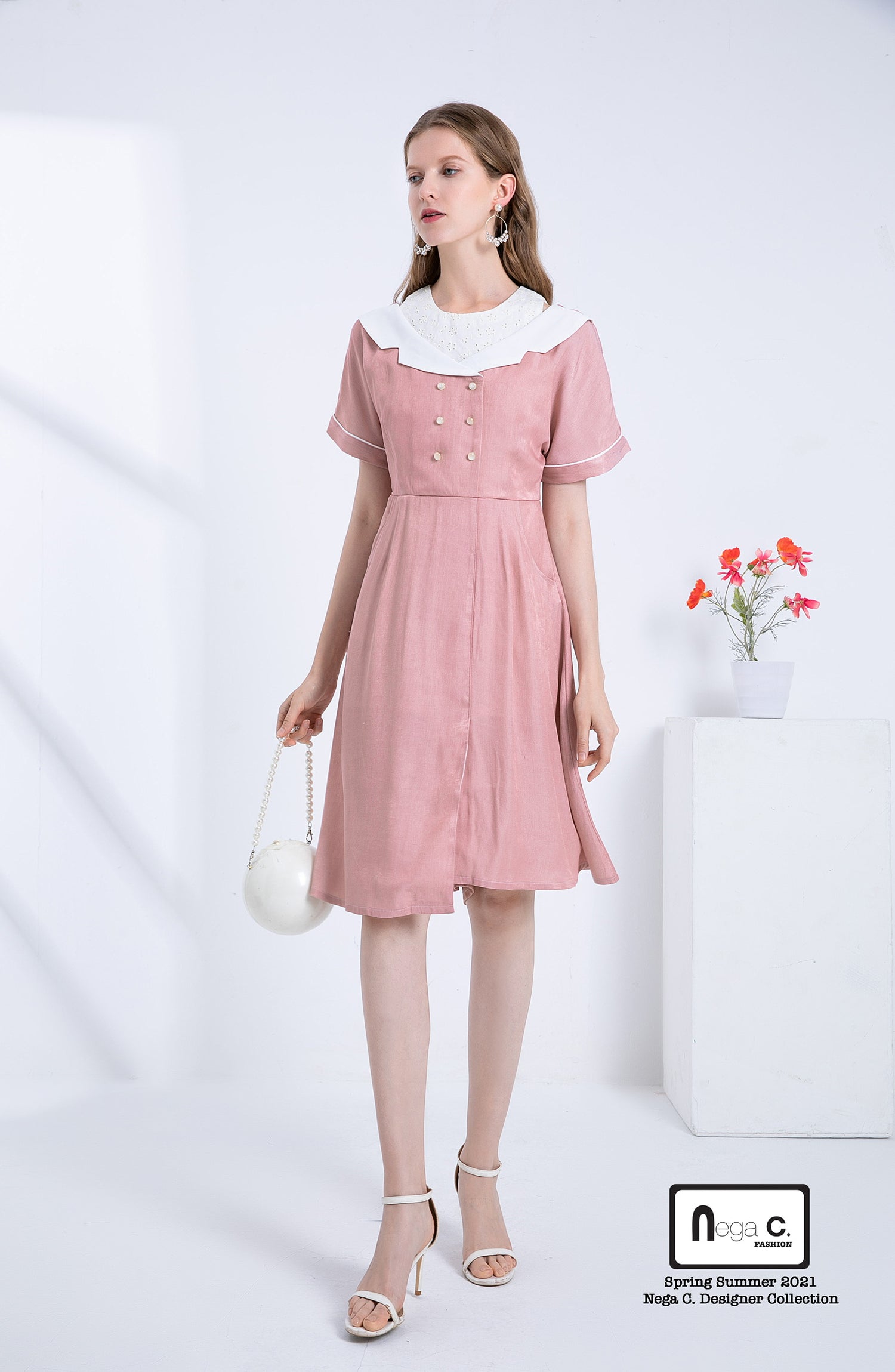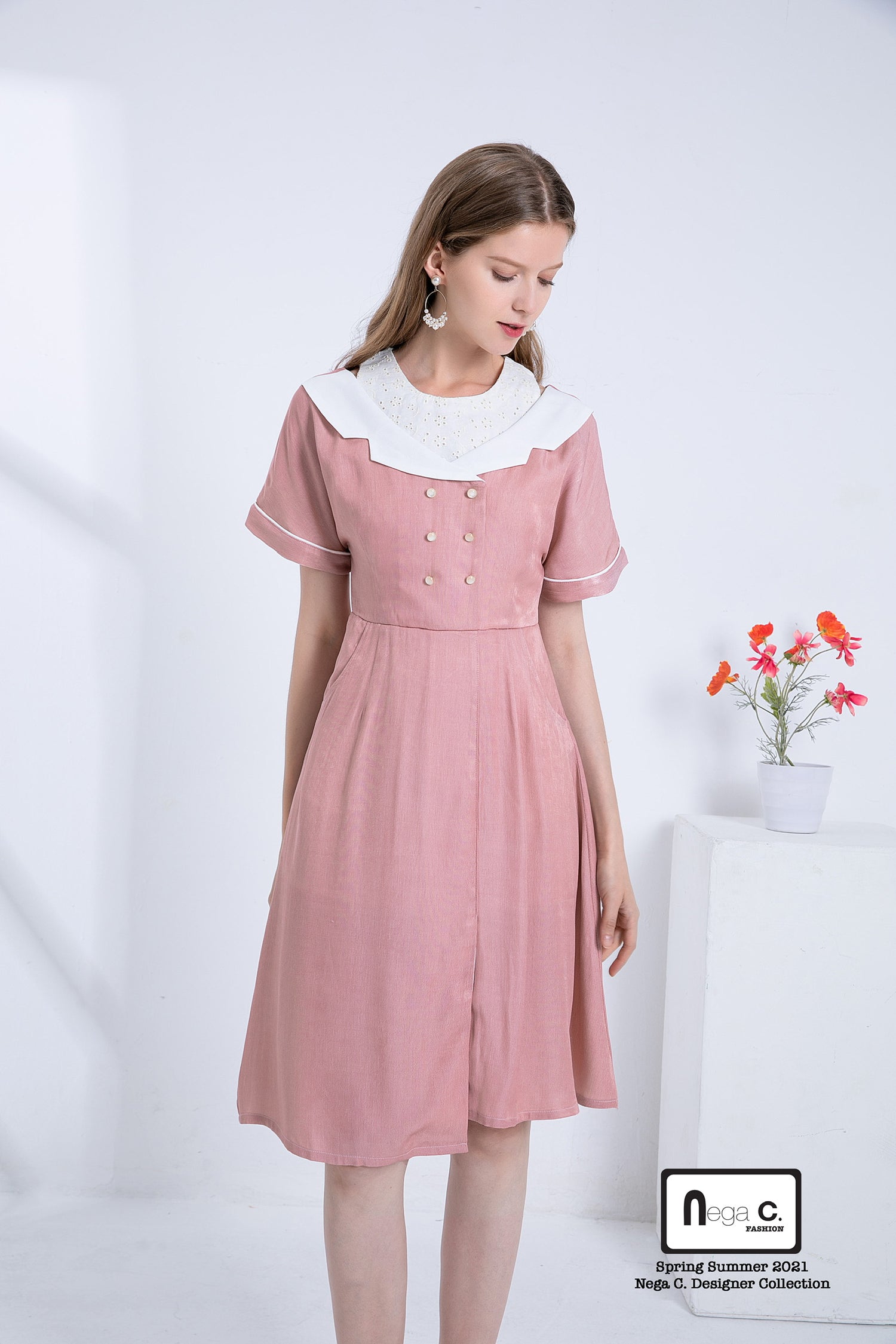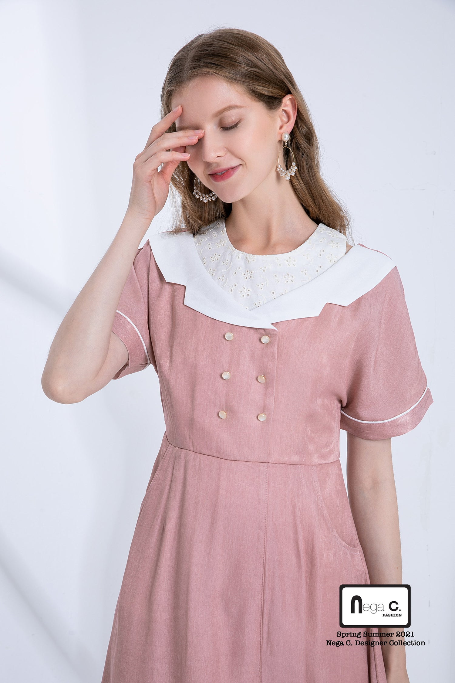 Nega C. เดรสเชิ้ตปลอมสไตล์เรโทร | สีชมพู |